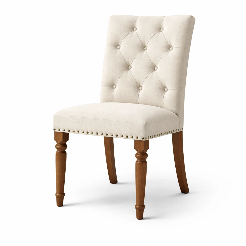 Sillas de comedor de tela con patas de madera beige