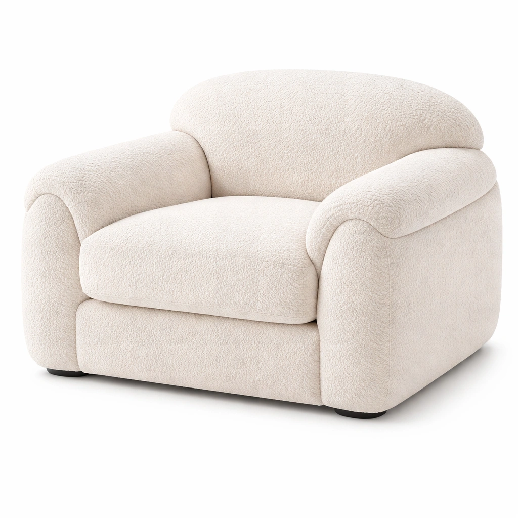 Sillón de tela bouclé crema 100x95x75 cm