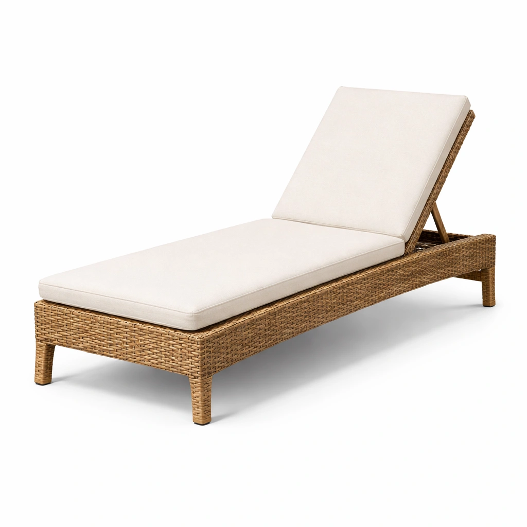 Tumbona de ratán sintético con cojín ajustable y estructura de acero beige