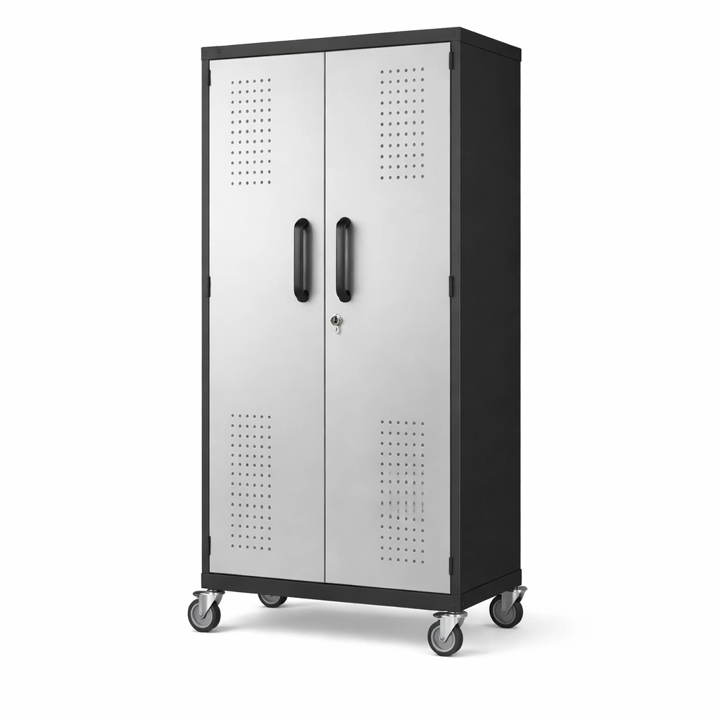 Armario de garaje de acero con ruedas y puerta doble 185x90x45 cm