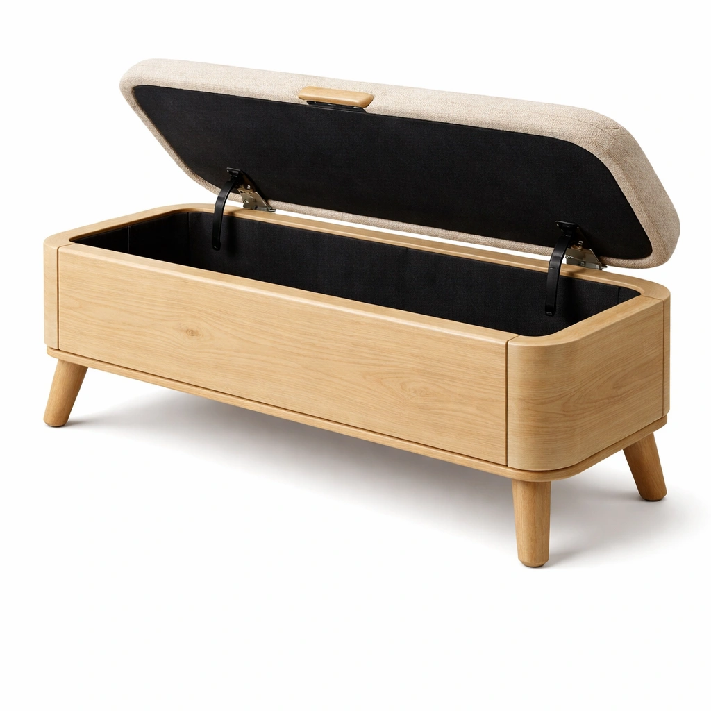 Componentes: Banco con compartimento interior, tapa acolchada