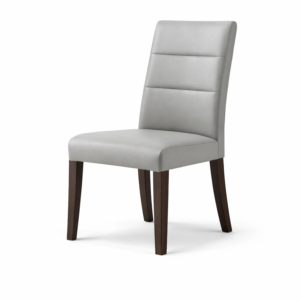 Sillas de comedor de polipiel gris con patas de madera maciza