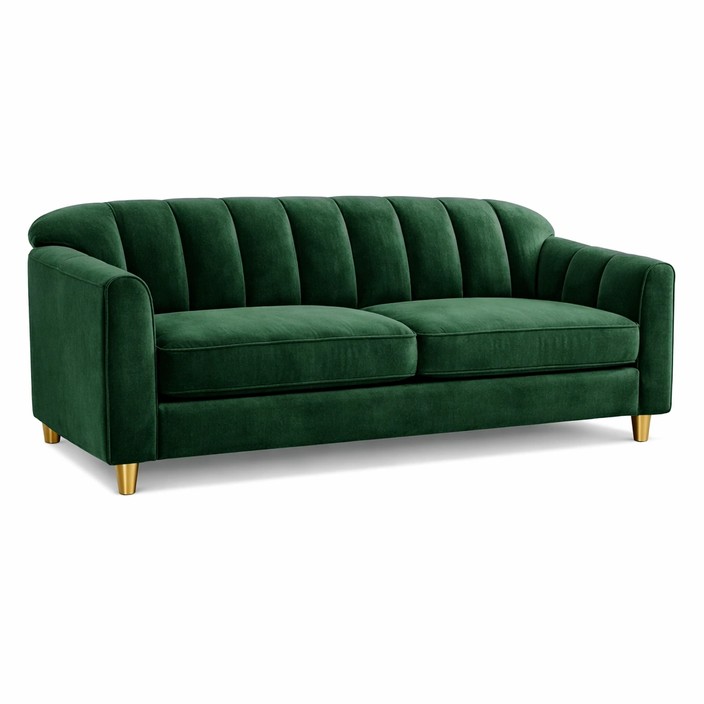 Sofá de dos plazas confeccionado en terciopelo con patas de madera maciza, diseñado para uso en interiores.