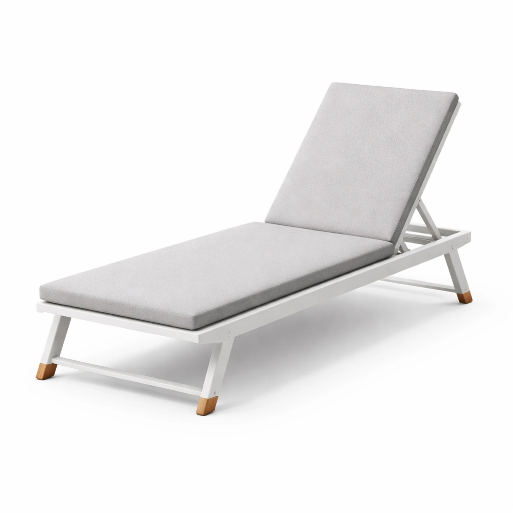 Tumbona fabricada con estructura de aluminio resistente y ligera, ideal para exteriores.